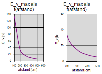 De afstand waarop de lamp 400 lux geeft is 58 cm