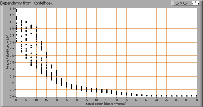 Bij het berekenen van de gemiddelde lichtsterktewaardes per hoek en deze uit te zetten in een grafiek, is de stralingshoek te bepalen: dit is berekend op 27 graden.