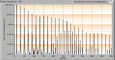 Wanneer het powerspectrum van de stroom bepaald wordt, dan is het aantal hogere harmonischen zichtbaar.