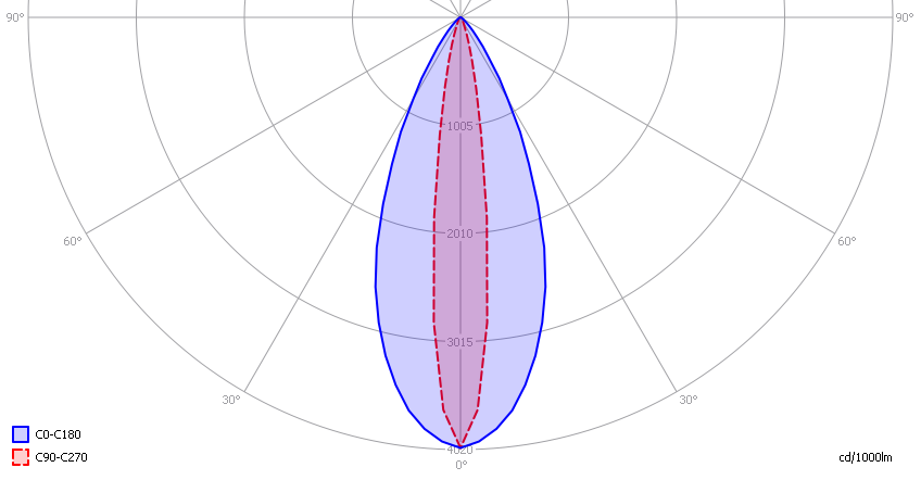 Het lichtdiagram van het C0-C180 vlak is de doorsnijding van de lamp dwars op de richting van de montagebeugel, en het C90-C270 vlak is de doorsnijding van de lamp door de richting van de montagebeugel.