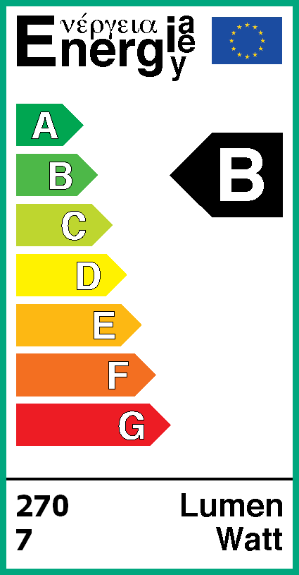 Met de meting van de lichtstroom en het opgenomen vermogen is de klassificatie te geven van deze lamp. Dit wordt voor een aantal lampen verplicht gesteld in de EU, zie ook de OliNo site waar uitleg staat voor welke lampen het geldt, hoe het label eruit ziet en wat het moet bevatten aan informatie.
