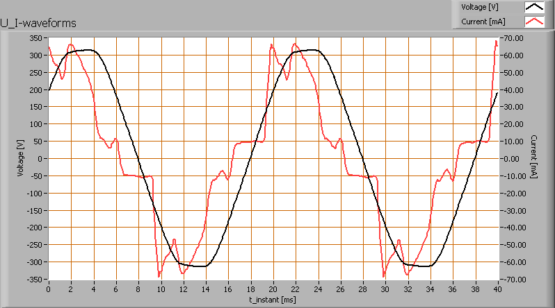 Tevens is van deze lamp de spanningsvorm en stroomvorm opgenomen. Hoe dat is gebeurd wordt uitgelegd op de OliNo site.