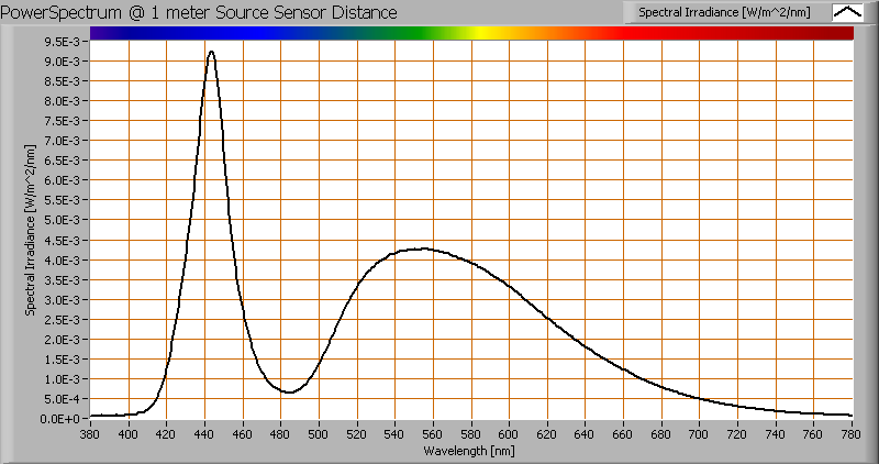 De gemeten kleurtemperatuur van deze lamp is ongeveer 6375 K wat koudwit is.