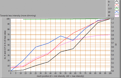 In dat gebied is de verlichtingssterkte te varieren tussen 0 – 100 % (deze 100 % is zonder initiele drop zoals boven vermeldt).