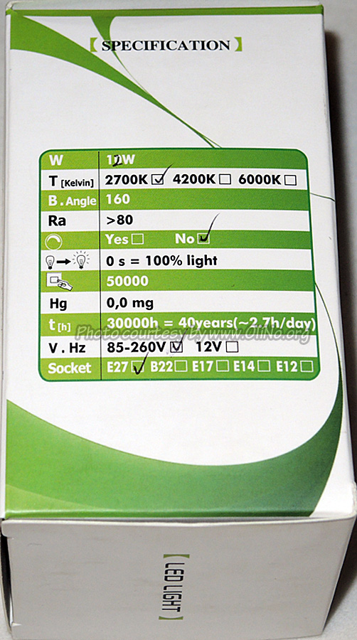 De lamp wordt maximaal ongeveer 52 graden warmer dan omgevingstemperatuur. Opwarmeffect: Gedurende de opwarming varieert de verlichtingssterkte gedurende 34 minuten en neemt dan 13 % af. Afhankelijkheid spanning: Er is geen (significante) afhankelijkheid van de verlichtingssterkte wanneer de voedingsspanning tussen de 200 – 250 V AC varieert. Aan het eind van het artikel een extra foto. |
