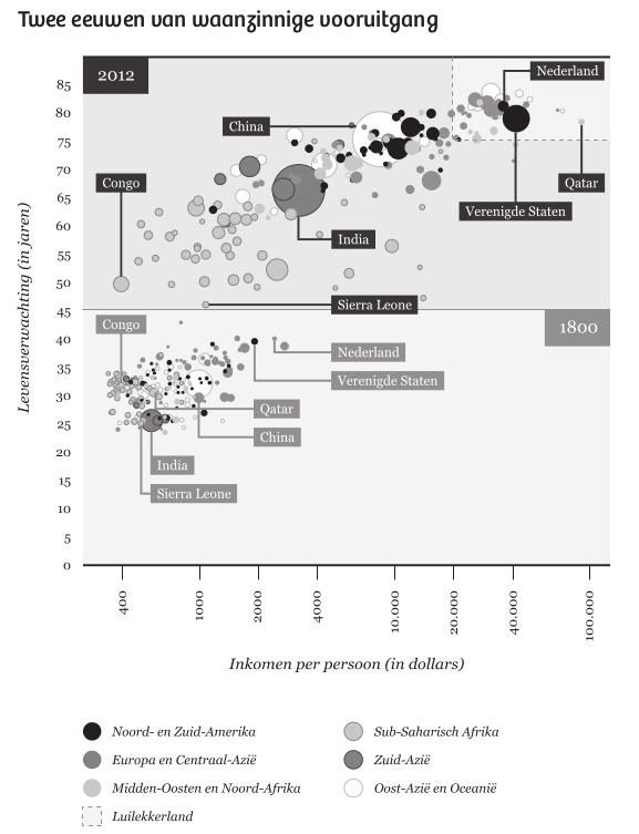 Het boek geeft ook aan dat we af moeten van het bbp als maatgevende parameter voor een goede economie. Daar ben ik het ook roerend mee eens. Het bbp maakt ons (echt) niet gelukkig. Een woonplek waar we ons niet hoeven te bekommeren om veiligheid, onderdak, voedsel en zorg is iets wat erg belangrijk is. Wat ons daarna gelukkig kan maken is een goede omgang met anderen en een tijdsbesteding die we zelf leuk vinden. Waar eigen vrijheid is om dingen te ondernemen en doen.