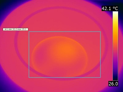 | Algemene opmerkingen | De omgevingstemperatuur gedurende de hele set van verlichtingsterktemetingen was 24.0 – 25.9 deg C.De lamp wordt maximaal ongeveer 16.5 graden warmer dan omgevingstemperatuur.Opwarmeffect: Gedurende de opwarming varieert de verlichtingssterkte niet significant (< 5 %).Gedurende de opwarming varieert het vermogen niet significant (< 5 %). De variatie in efficiëntie (hier indicatief berekend door deling van verlichtingssterkte door vermogen) door het opwarmen is -2 %. Een erg hoog negatief getal duidt op een significante afname door bijvoorbeeld warm worden van de lichtbron (lagere levensduur).Afhankelijkheid spanning: Er is een constante afhankelijkheid van de verlichtingssterkte wanneer de voedingsspanning tussen de 200 – 250 V AC varieert. Er is een constante afhankelijkheid van het opgenomen vermogen wanneer de voedingsspanning tussen de 200 – 250 V AC varieert.Aan het eind van het artikel een extra foto. |