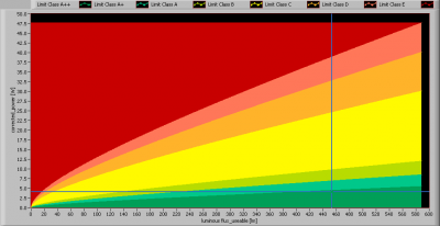 Van belang voor de energieclassificatie zijn gecorrigeerd vermogen en nuttige lichtstroom.