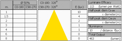 | Stralingshoek | 328 deg | 328 graden is de stralingshoek voor alle C-vlakken daar deze lamp symmetrisch is over de 1ste as. |