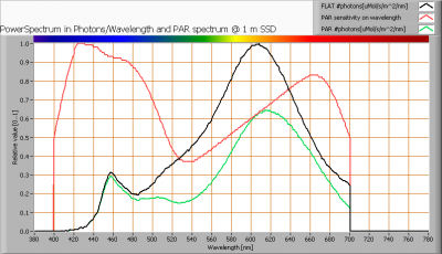Als gekeken wordt naar het gedeelte van het spectrum van het licht van de lamp, dat bruikbaar is voor fotosynthese, dan komt dat neer op 64 % (geldig voor het golflengtegebied van 400-700 nm.