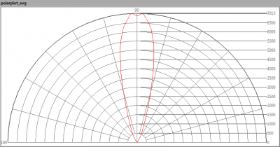 Bij het berekenen van de gemiddelde lichtsterktewaarden per hoek en deze uit te zetten in een grafiek, is de stralingshoek te bepalen: dit is berekend op 28 graden voor het C0-C180 vlak en 28 graden voor het C90-C270 vlak.