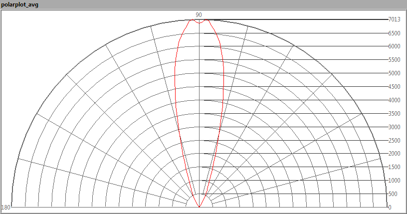 Deze plot geeft grafisch weer welke verschillende meetwaarden verkregen zijn bij iedere kantelhoek. Voor een bepaalde kantelhoek zijn er zo een aantal metingen, die afkomstig zijn van verschillende draaihoeken rondom de lamp.