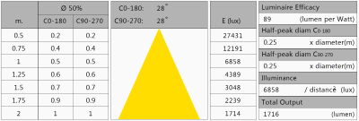 | Stralingshoek | 28 deg | 28 graden is de stralingshoek voor alle C-vlakken daar deze lamp symmetrisch is over de 1ste as. |