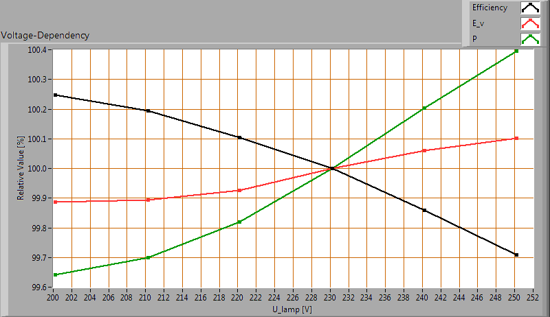 Afhankelijkheid van lampparameters van de ingestelde lampspanning.