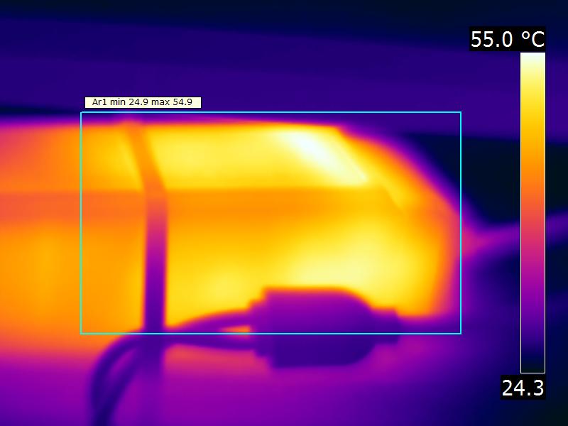 De variatie in efficiëntie (hier indicatief berekend door deling van verlichtingssterkte door vermogen) door het opwarmen is -2 %. Een erg hoog negatief getal duidt op een significante afname door bijvoorbeeld warm worden van de lichtbron (lagere levensduur).