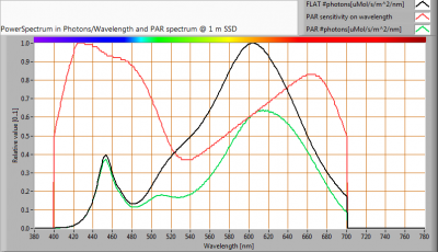 Als gekeken wordt naar het gedeelte van het spectrum van het licht van de lamp, dat bruikbaar is voor fotosynthese, dan komt dat neer op 64 % (geldig voor het golflengtegebied van 400-700 nm.