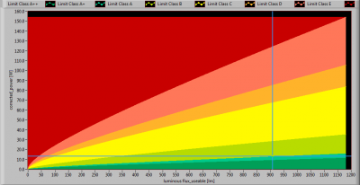 Van belang voor de energieclassificatie zijn gecorrigeerd vermogen en nuttige lichtstroom.