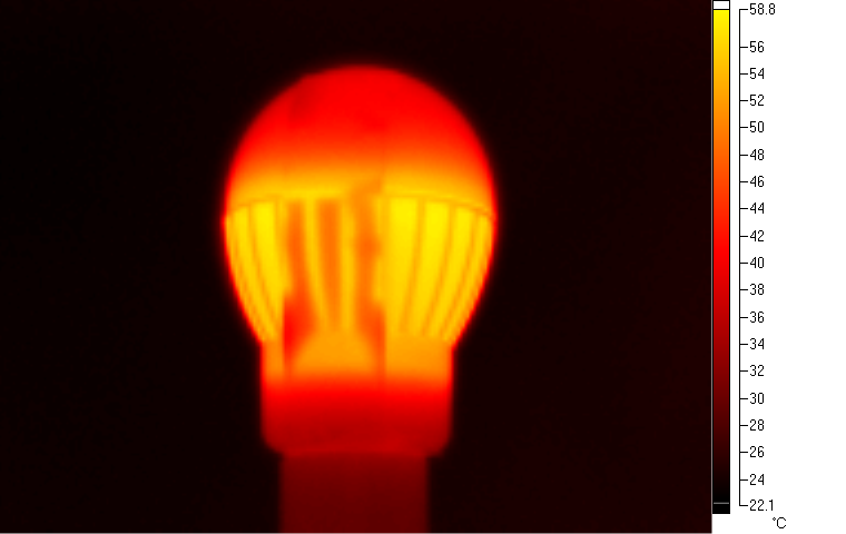 Temperature image of the light bulb, temperature probed at side cover