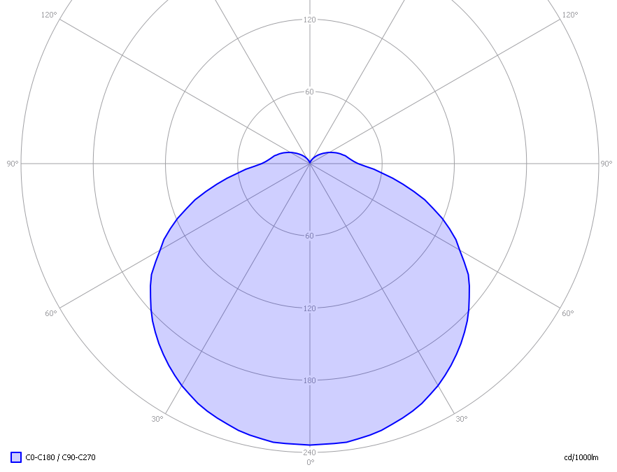 It indicates the luminous intensity around the light bulb. The directions C90-C270 and C0-C180 give the same result as there is a symmetry along the 1st axis.