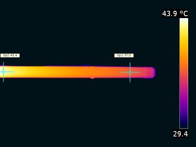 The temperature of the housing gets maximally about 24 degrees hotter than ambient temperature. Warm up effect: during the warm up time the illuminance increases about 12 % and the consumed power increases about 12 %. Voltage dependency: There is no (significant) dependency of the illuminance when the power voltage varies between 200 – 250 V AC. At the end of the article an additional photo. |