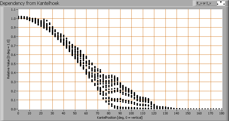 Herewith the plot of the averaged luminous intensity Iv as a function of the inclination angle with the light bulb.