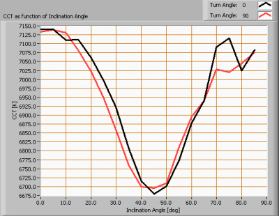The color temperature is given for inclination angles up to 85 deg. Beyond that value the illuminance is so low (< 5 lux) that it has not been used for color determination of the light.