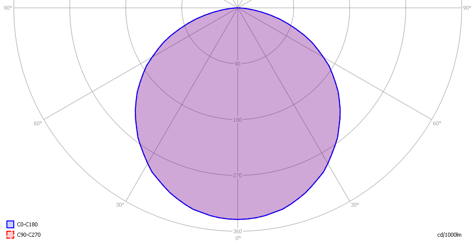 This radiation pattern is the average of the light output of the light diagram given earlier. Also, in this graph the luminous intensity is given in Cd.