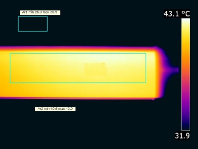 The temperature of the housing gets maximally about 17 degrees hotter than ambient temperature. Warm up effect: During the warmup time the illuminance doesn’t vary significantly (< 5 %). During the warmup time the power doesn’t vary significantly (< 5 %). Voltage dependency: There is no (significant) dependency of the illuminance when the power voltage varies between 200 – 250 V AC. At the end of the article an additional photo. |