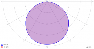 This radiation pattern is the average of the light output of the light diagram given earlier. Also, in this graph the luminous intensity is given in Cd.