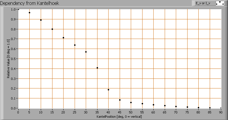 Herewith the plot of the averaged luminous intensity Iv as a function of the inclination angle with the light bulb.