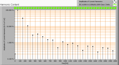 Harmonics in the current waveform and checked against IEC61000-3-2:2006 and A2:2009