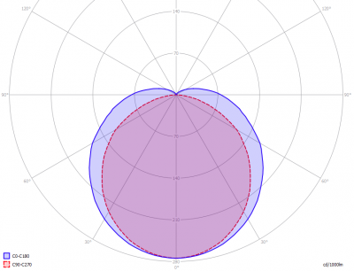 This radiation pattern is the average of the light output of the light diagram given earlier. Also, in this graph the luminous intensity is given in Cd.