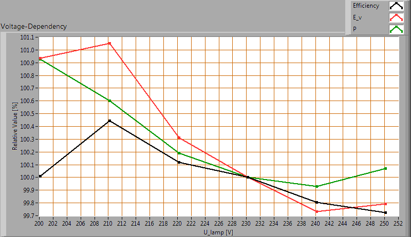 | Eff-variation | -1 % | This is the variation in efficacy during the warming up. A very high negative value indicates a significant decrease for instance due to heating up of the lamp (decrease of lifetime). |