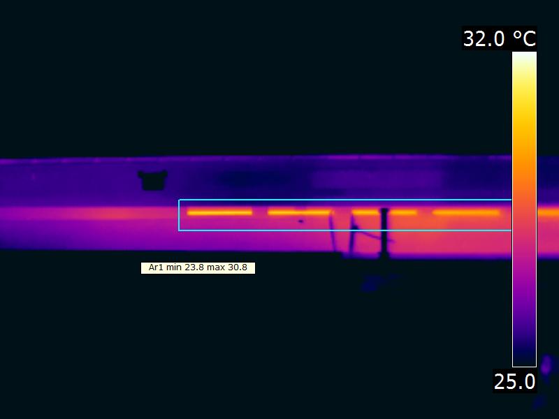 Warm up effect: During the warmup time the illuminance doesn’t vary significantly (< 5 %). During the warmup time the power doesn’t vary significantly (< 5 %). Voltage dependency: There is no (significant) dependency of the illuminance when the power voltage varies between 200 – 250 V AC. At the end of the article an additional photo. |
