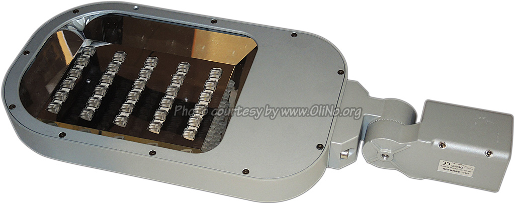 | General remarks | The ambient temperature during the whole set of illuminance measurements was 24.2 – 26.6 deg C.The temperature of the housing gets maximally about 29.5 degrees hotter than ambient temperature.Warm up effect: During the warmup time the illuminance varies during 148 minutes and decreases with 17 %. During the warmup time the power varies during 154 minutes and decreases with 20 %. The variation in efficacy (calculated as indication by simplydividing the illuminance by the power) during the warming up is 3 %. A very high negative value indicates a significant decrease for instance due to heating up of the lamp (decrease of lifetime).Voltage dependency: There is no (significant) dependency of the illuminance when the power voltage varies between 200 – 250 V AC. There is no (significant) dependency of the consumed power when the power voltage varies between 200 – 250 V AC. At the end of the article an additional photo. |
