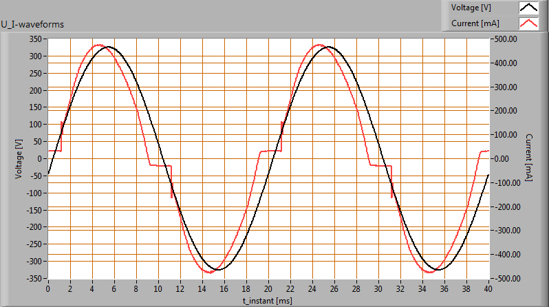 This current waveform has been checked on requirements posed by the norm IEC 61000-3-2:2006 (including up to A2:2009).