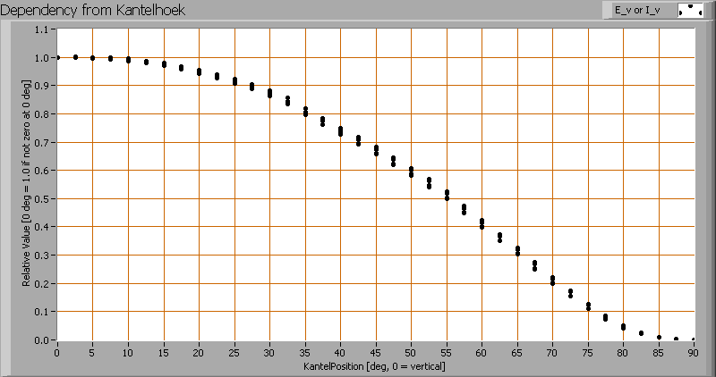 Herewith the plot of the averaged luminous intensity Iv as a function of the inclination angle with the light bulb.