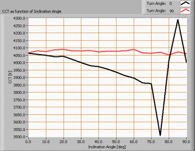 Die Farbtemperatur wird für verschiedene Kippwinkel bis 90 Grad gemessen. Ausserhalb is nicht mehr gemessen.