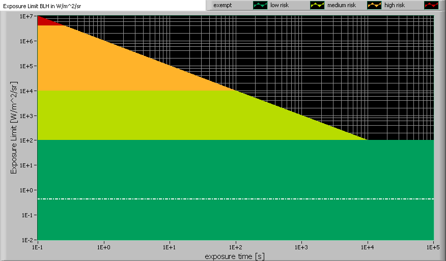 | alphaAVG [rad] | 0.100 | Average (apparent) source angle. If average >= 0.011 rad then the exposure limit is computed with radiance Lb. Otherwise with irradiance Eb. |