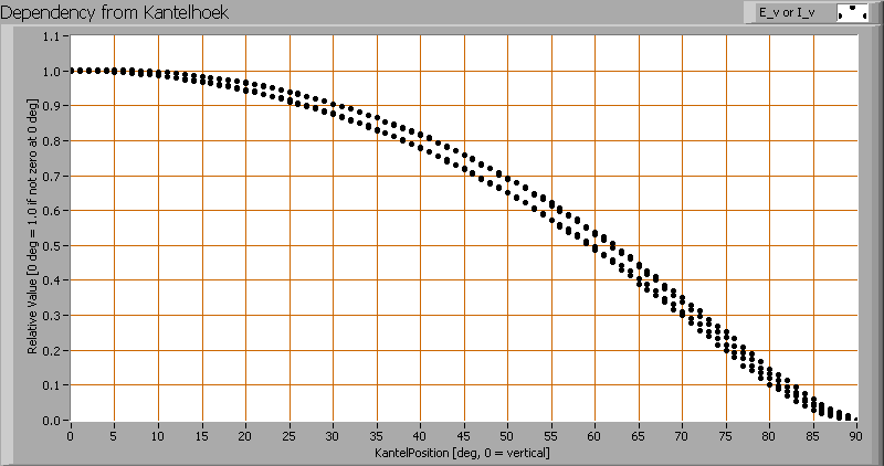 Herewith the plot of the averaged luminous intensity Iv as a function of the inclination angle with the light bulb.