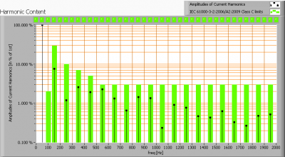 Harmonics in the current waveform and checked against IEC61000-3-2:2006 and A2:2009