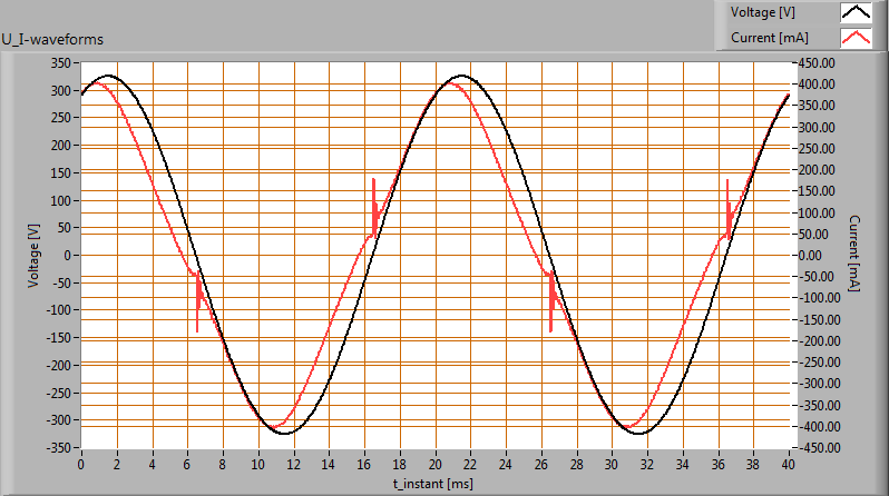 | Minimal inrush current | 1.559 A | This current has been found at a voltage start angle of 170 degrees. |