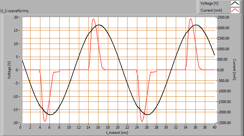 | Minimal inrush current | 2.872 A | This current has been found at a voltage start angle of 170 degrees. |