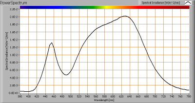 De gemeten kleurtemperatuur van deze lamp is ongeveer 3250 K wat tussen warmwit en helderwit licht ligt.