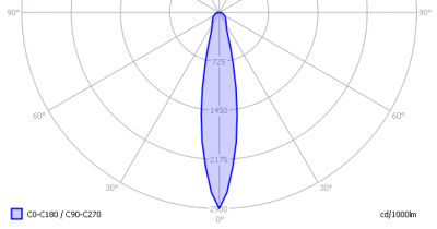 Het C0-C180 vlak en het C90-C270 vlak geven hetzelfde diagram, omdat de lamp een symmetrie over de z-as heeft. Het is een smalle bundel.