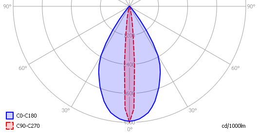 Een interessante grafiek is het lichtdiagram, wat de helderheid aangeeft in het C0-C180 (lengterichting van de lamp) en het C90-C270 vlak.