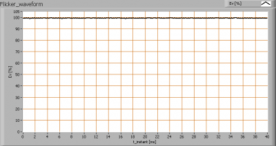Een abrupte variatie van + of – 5 V levert een verandering van de lichtintensiteitswaardes van < 0.1 %. Dit verschil in lichtintensiteit is niet zichtbaar wanneer deze variatie abrupt gebeurt.