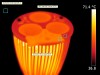 Het metaal op de kopse kant van de led heeft een lagere emissiviteit dat die van schilderstape. De emissiviteit ligt rondom de waarde 0.65. Dat wil zeggen dat het een verminderde capaciteit heeft om via straling de warmte kwijt te kunnen.