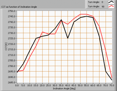 De kleurtemperatuur is gegeven voor kantelhoeken tot 75 graden. Daarbuiten is de verlichtingssterkte erg laag (< 5 lux) geweest gedurende de meting.