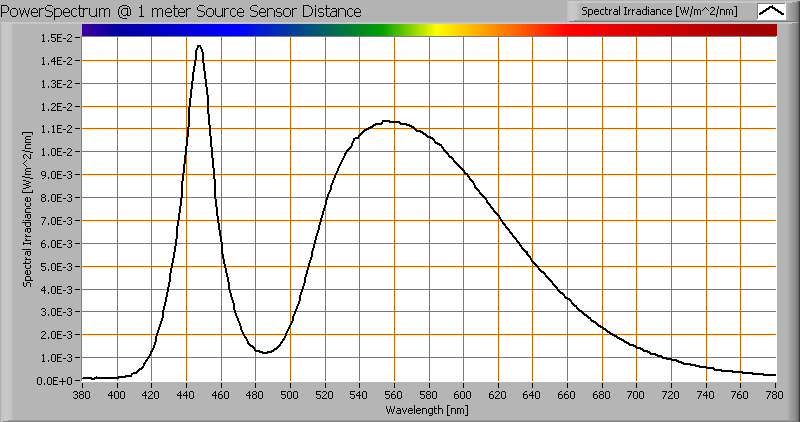 De gemeten kleurtemperatuur van deze lamp is ongeveer 4700 K wat neutraalwit is.